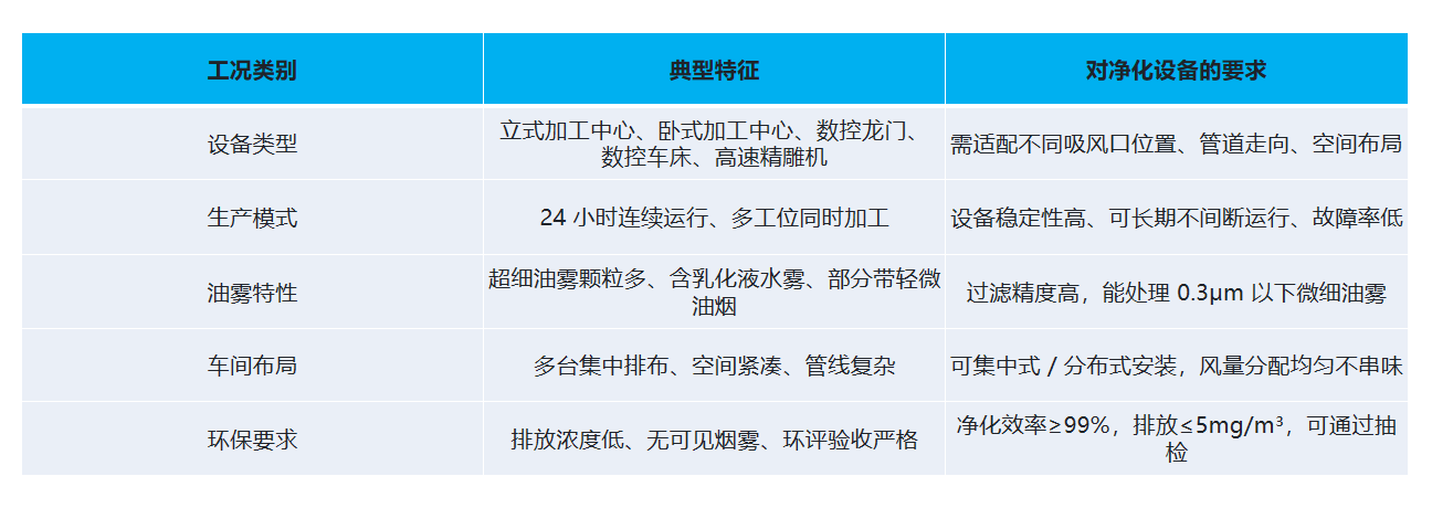 一、先看工况:大型数控加工的油雾特点,决定净化设备怎么配
