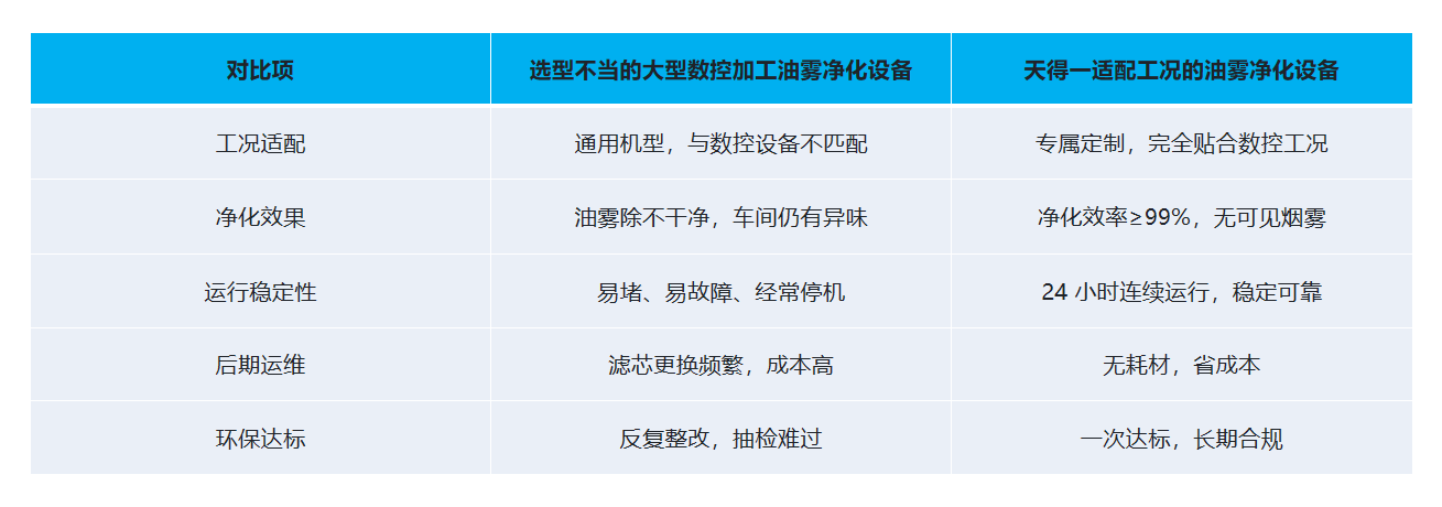 天得一结合多年工业油雾治理经验与上千家数控加工车间案例,给出专业、可落地的选型答案,让企业一次选对、稳定达标、不踩坑。