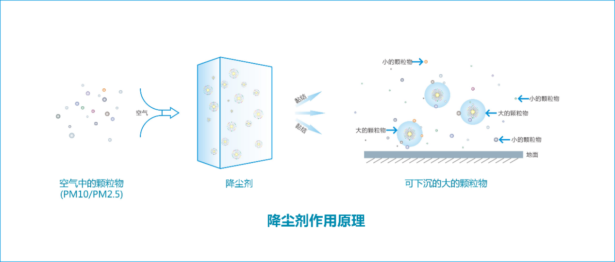 降尘剂对颗粒物进行捕捉凝聚后,迅速沉降至地面,能够短时间内降低空气中粉尘浓度。