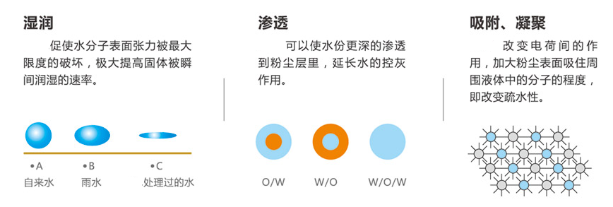 ①使用方便:抑尘剂类产品溶解性均很强,仅需将水与产品按照1:100的比例混合,即可溶解为均一的溶液,用洒水车、雾炮车或雾化喷淋系统直接喷洒既可。