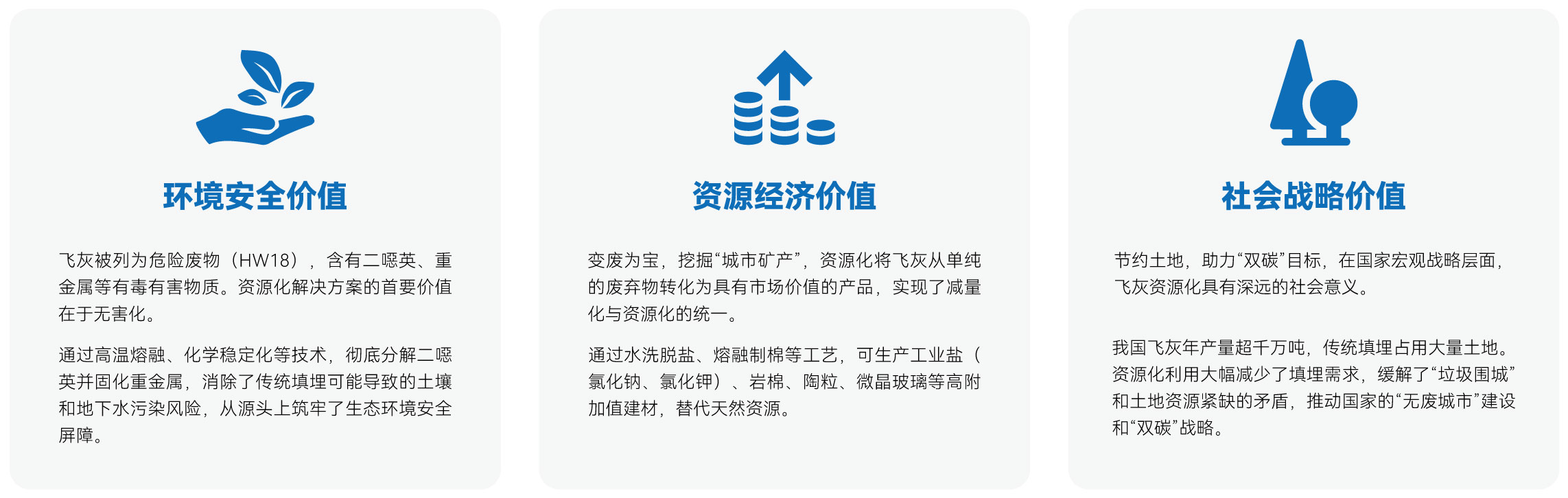 当前国家及地方层面正通过制定规划、设立“无废城市”目标、完善标准规范等方式,鼓励和引导飞灰资源化技术的研发与应用,逐步限制并最终减少飞灰的直接填埋。飞灰处理资源化的核心是将飞灰从需要安全处置的“城市包袱”,转变为可循环利用的“城市矿产”,构建绿色低碳的循环经济新模式。